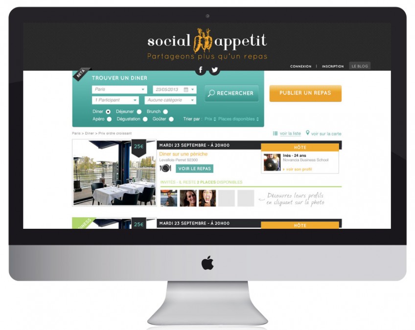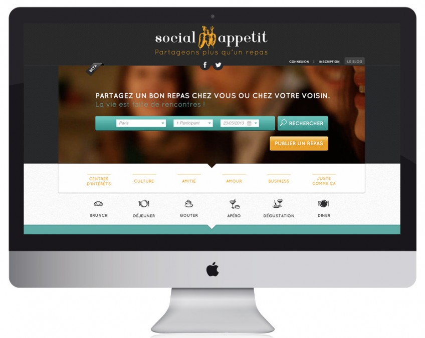 Création et réalisation du système identitaire, de la charte graphique et du site internet de cette plateforme communautaire d’organisation de repas entre particuliers ayant pour but de favoriser les rencontres.
