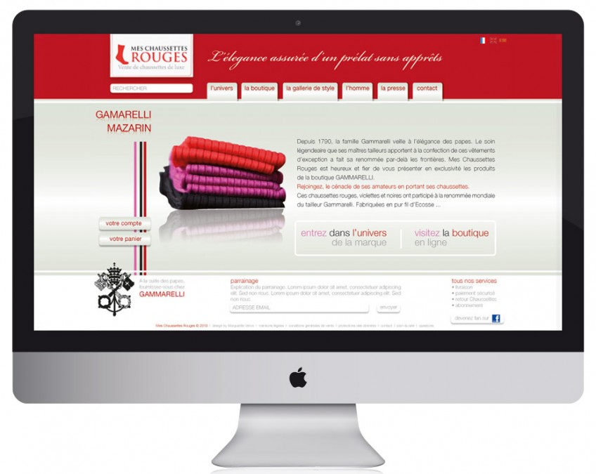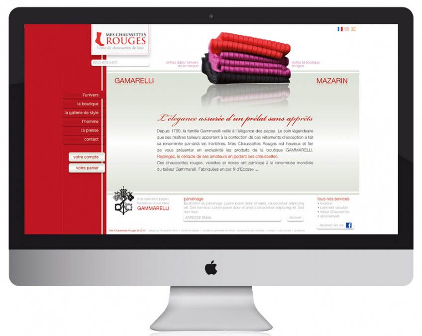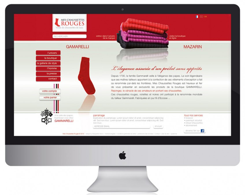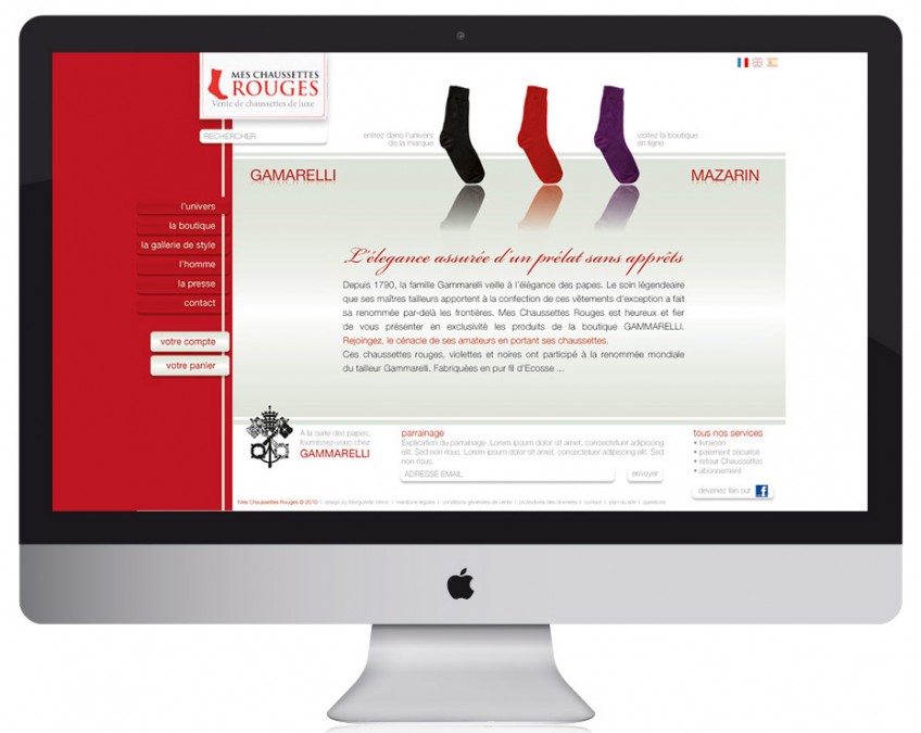 Création et réalisation de propositions pour ce site internet vendant des chaussettes de luxe.